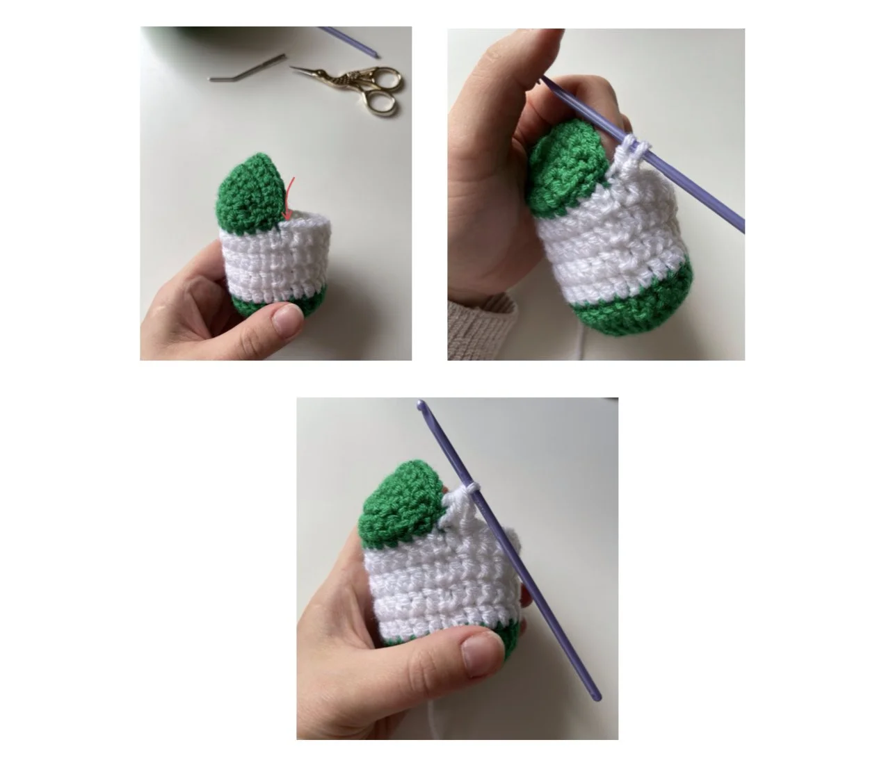You could even try using a faux fur yarn around the top, or something with some glitter or tinsel for some extra holiday shine!