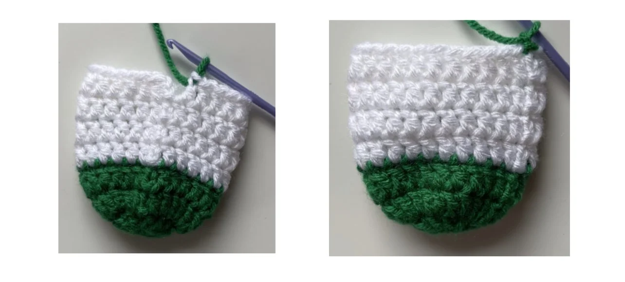 Row 9: 2 SC in next stitch, SC 8, 2 SC in next stitch. (12)