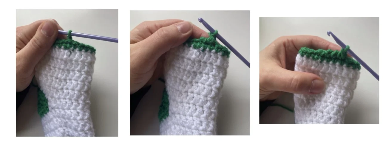 Join main color with a slip stitch in the first main color stitch to the right of the heel and CH 2.